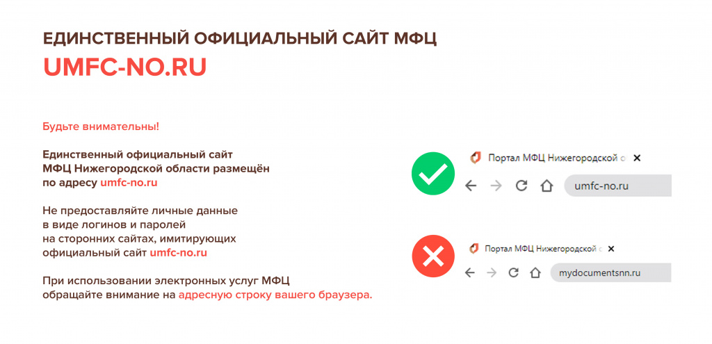 Обращаем ваше внимание, что единственный официальный сайт УМФЦ Нижегородской области размещён по адресу umfc-no.ru