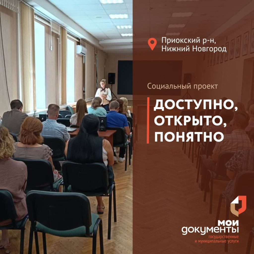 10 июля 2024 г., в рамках проекта «Доступно, открыто, понятно», сотрудники ГБУ НО «Уполномоченный МФЦ» Приокского района города Нижнего Новгорода, в лице начальника отделения Кудиновой Е. А. и ведущего аналитика Овчинниковой Е. С., провели встречу с сотрудниками администрации Приокского района.